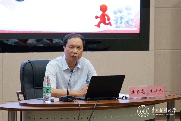 林昌虎作了题为“砥砺奋进的五年”的专题报告,他围绕“五位一体”看全国五年成就、从“后发赶超”看贵州五年、从“跨越发展”看贵州医科大学五年等三个方面展开了阐述。首先,他从经济发展、民主政治、文化建设、改善民生、生态文明等五个方面,全面介绍了我国五年来取得的辉煌成就。其次,从“紧紧抓住历史机遇,稳步实施重大战略”、“奋力冲出‘经济洼地’,综合实力显著提升”、“全力总攻‘绝对贫困’,人民福祉不断改善”、“全面深化改革开放,发展活力空前释放”、“深入推进绿色发展,生态环境持续优化”等方面全面回顾了贵州五年来取得的巨大成就。最后,从传承悠久历史、实现跨越发展等方面,全面介绍了我校的历史和五年来取得的成就。