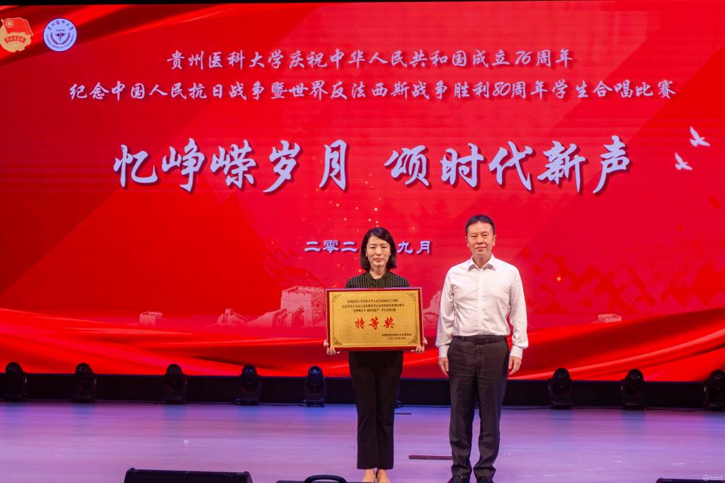 比赛现场流光溢彩,青春飞扬。各参赛队伍紧紧围绕爱国和青春主题,以歌叙史、以声言志,倾情演绎了《在太行山上》《保卫黄河》《没有共产党就没有新中国》等荡气回肠的红色经典,以及《如愿》《星辰大海》《追梦赤子心》等朝气蓬勃的青春乐章。经过一个多月的精心准备,各学院在传统合唱中创新融入深情朗诵、情景表演、舞蹈演绎、乐器伴奏等多元艺术形式,让经典旋律焕发时代新声,让青春之歌激荡奋进力量。30余首承载历史记忆与时代梦想的歌曲轮番上演,或激昂澎湃,或深情婉转,充分展现了贵医青年自信自强、团结奋斗、朝气蓬勃的精神风貌。整场演出高潮迭起,掌声如潮,热烈的气氛感染着每一位在场师生。