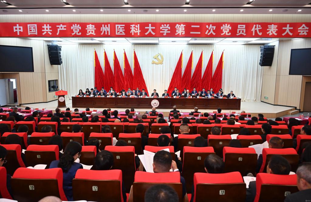 大会号召,全校各级党组织、全体党员和广大教职医护员工生要更加紧密地团结在以习近平同志为核心的党中央周围,高举中国特色社会主义伟大旗帜,凝心聚力、锐意进取,坚持一张蓝图绘到底,以久久为功的定力、埋头苦干的作风、踔厉奋发的姿态和勇毅前行的决心,奋力推进特色鲜明的高水平医科大学建设,为服务中国式现代化进程中展现贵州新风采作出积极努力和贡献!