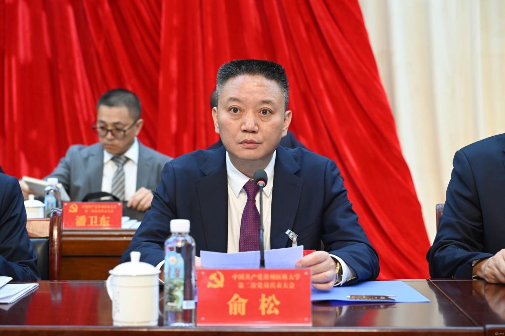 汤磊代表中国共产党贵州医科大学第一届委员会向大会作题为《凝心聚力担使命 砥砺奋进谱新篇 为建设特色鲜明、同类先进、国内一流的高水平医科大学而团结奋斗!》的报告。报告共分为四个部分:过去五年的工作成效及启示;新征程中的机遇与挑战、战略和目标;未来五年的发展规划及展望;全面加强党的建设,推动新的伟大工程再上新台阶。