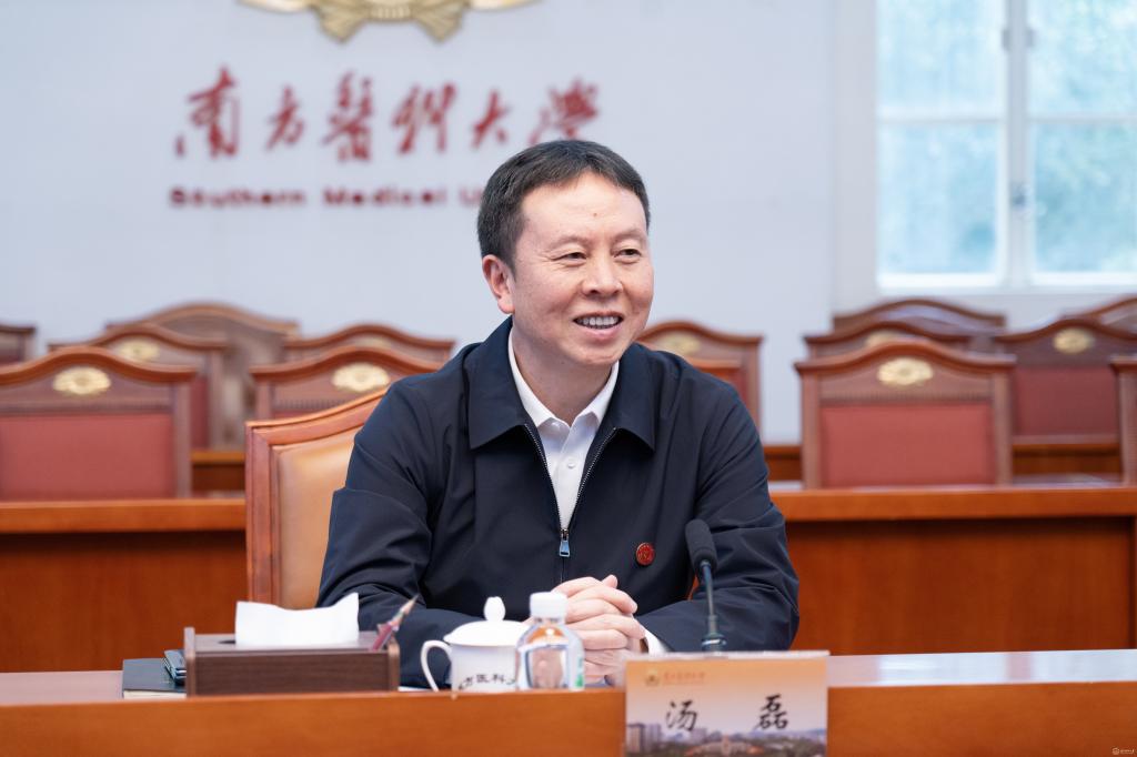 张玉润代表南方医科大学对汤磊一行的到访表示热烈欢迎。他表示,当前南方医科大学正在聚焦“十五五”发展规划和“双一流”建设目标,深入贯彻并主动对接“粤港澳大湾区建设”重大国家战略和省委“1310”具体部署,推动学科实力和科研创新水平全面提升。希望双方能够在中药民族医药研究领域加强交流与合作,聚焦实验室方向与建设任务,加强协同攻关与人才联合培养,双方共同产出更多标志性成果,打造校际合作的典范。