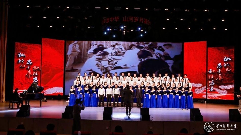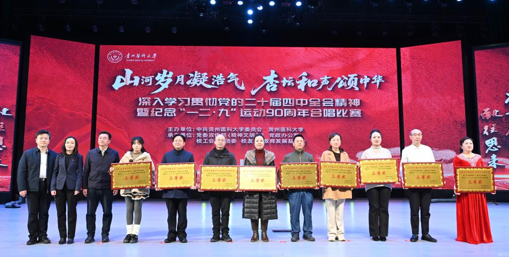 校党委书记汤磊在致辞中指出,本次活动是深入学习贯彻党的二十届四中全会精神、中共贵州省委十三届八次全会精神,纪念“一二·九”运动90周年的重要实践,旨在通过红歌传唱凝聚师生力量,以艺术形式诠释“健康所系、性命相托”的医者使命。他强调,合唱不仅是声音的交融,更是精神的共鸣,希望通过比赛进一步激发师生爱国情怀与奋斗精神,为学校“十四五”收官与“十五五”开局注入文化动能。
