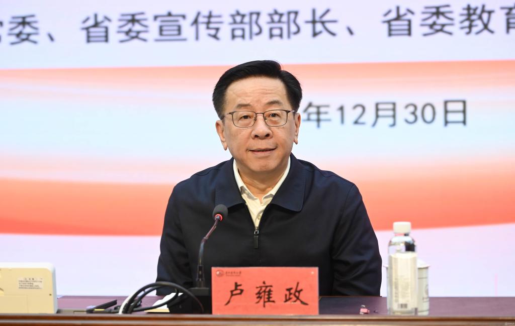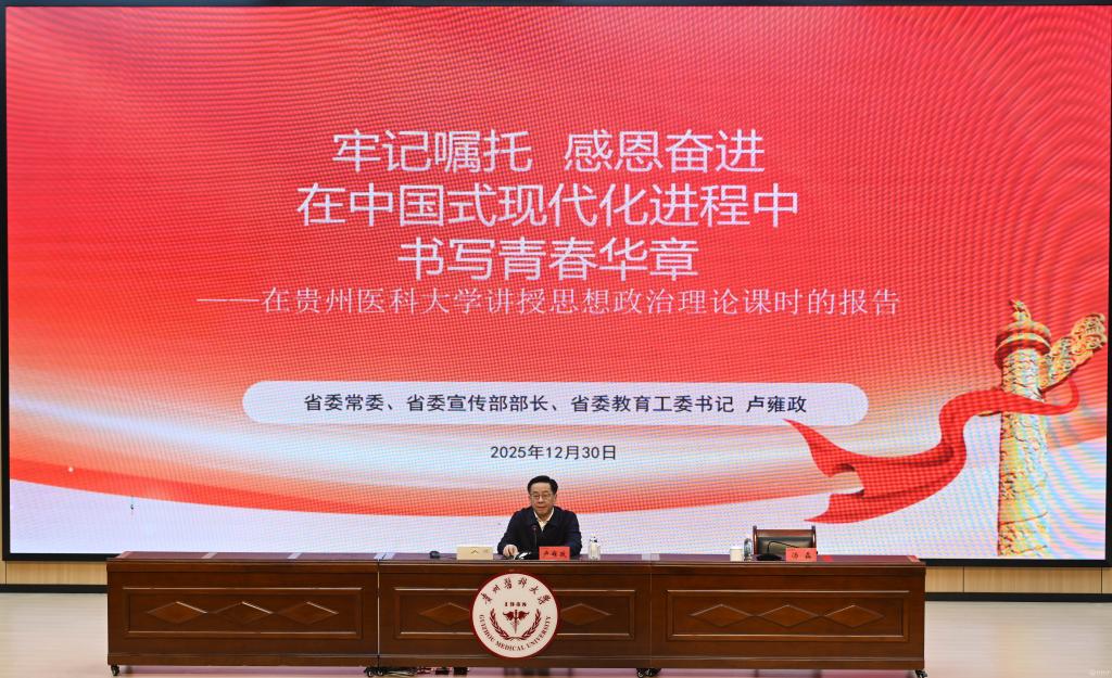 12月30日,省委常委、省委宣传部部长、省委教育工委书记卢雍政到我校云漫湖校区为师生讲授思想政治理论课,围绕学习贯彻党的二十届四中全会精神和习近平总书记考察贵州时的重要讲话精神,全面落实省委十三届八次全会部署,与广大师生交流,勉励广大青年学子牢记嘱托、感恩奋进,在中国式现代化进程中书写青春华章。
