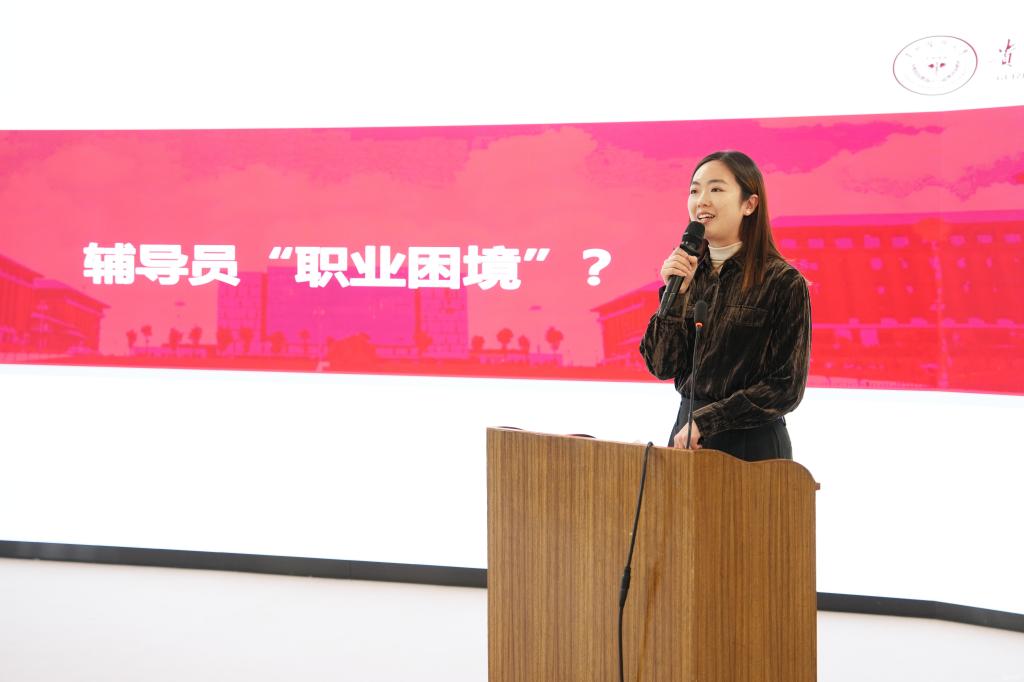 会上,优秀辅导员代表基础医学院宋渊丰结合“一站式”学生社区建设实践分享经验,运动与健康学院陈卫以“从事务应对到个人建构”为主题讲述了工作感悟。